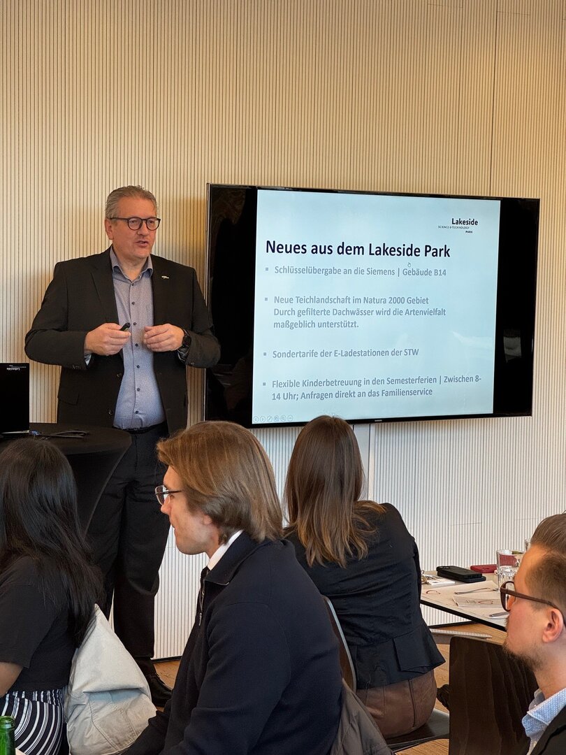 Zahlreiche Lakeside Park-Mieter:innen nutzten die Gelegenheit, um diese aktuellen Einblicke aus dem Lakeside Park zu erhalten, sich auszutauschen und neue Impulse mitzunehmen. Einmal mehr zeigte sich: Kooperation, Vernetzung und persönlicher Austausch werden im Lakeside Park aktiv gelebt – das Infofrühstück ist dafür ein etablierter und geschätzter Treffpunkt.