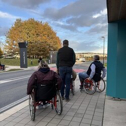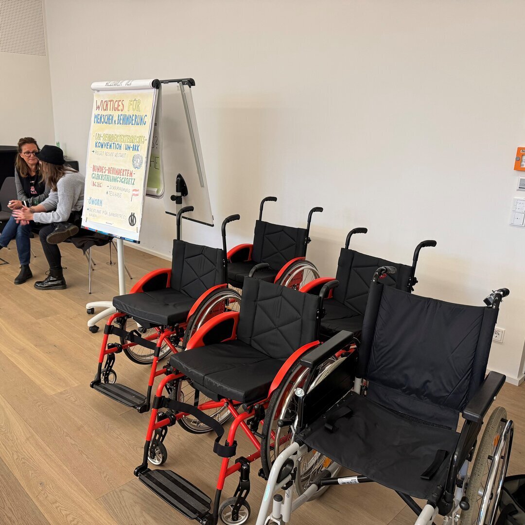 Besonders eindrucksvoll war der Nachmittag, an dem wir selbst ausprobieren konnten, wie es ist, im Rollstuhl zu sitzen oder sich als Mensch mit Sehbehinderung zu orientieren. Offenheit, Ehrlichkeit und Humor zogen sich dabei durch den gesamten Tag – genauso wie gegenseitiger Respekt und das ehrliche Interesse, voneinander zu lernen.